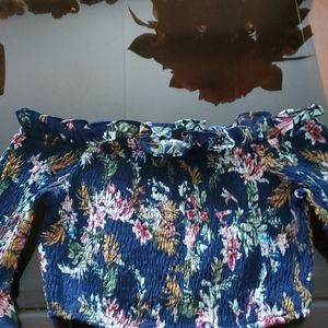 2 pices,off soulder long slevve with ruffle dark blue with flowers.It new but does not have tags😀