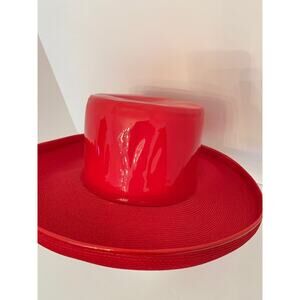 Small ( 6 3/4) Vintage Oleg Cassini Red Patent and Woven Hat Young America