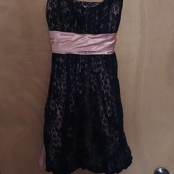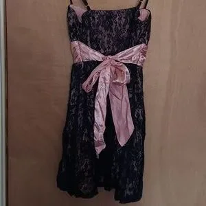 1 time wore, black lace with pinkish under mini dress