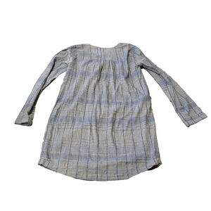 approx 35” length This shirt dress by ace&jig features a plaid pattern in shades of gray on a short length cotton blend fabric. It has long sleeves, a tie closure, and button accents. The dress is belted and has a button-front design, perfect for women who want a comfortable yet stylish attire. Ideal for various occasions, this dress is a must-have for fashion-savvy women.
