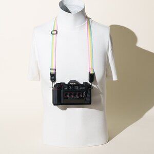 Bright, sturdy & store exclusive—this handcrafted rainbow camera strap is designed for smaller users or compact setups. Adjustable from 22–38", it offers a comfortable fit, lightweight feel & secure connection for beginner or young photographers.