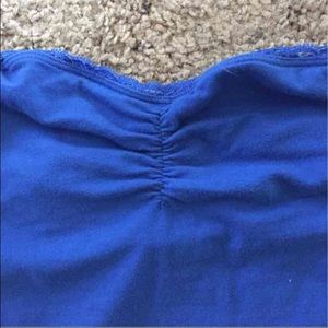 Beautiful bright blue color! Worn once, just can't pull of tube tops. Flares out at the bottom, has cute detailing on the front. Great top! As always feel free to ask any questions or offer 💕