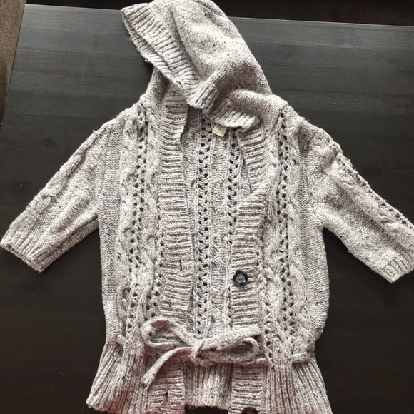 Small American rag half sleeve sweater with hood. 3 buttons and tie around bottom. Smoke free home.