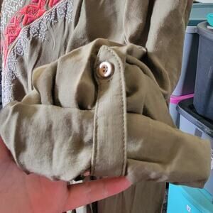 Small Andree By Unit Olive Green Flowy Boho Embroidered Floral Tunic Blouse