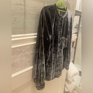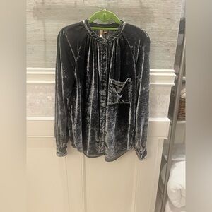 Small Anthropologie pilcro velvet femme button down collarless shirt grey gray
