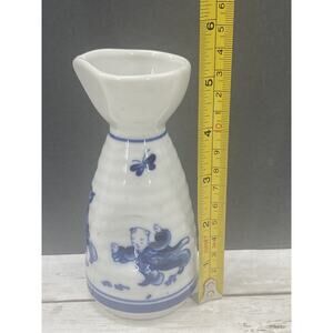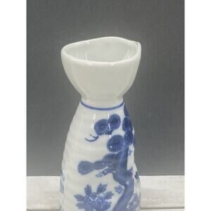 Small Antique Japanese Blue and White Porcelain Sakura Tree Sake Bottle