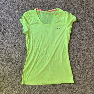 Adult Small Athletic top bundle: UA yellow (tag missing), Gymshart tank/muscle t, and GracebyGrit cami top with shelf lining. All in good condition.