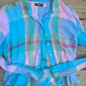 Small BDG Button up plaid long sleeve t. WORN ONCE and bought at Urban Outfitters!