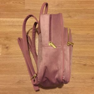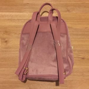 LIKE NEW small backpack (about the size of a piece of copy paper). Pink/orchid color. Has a velvet texture.