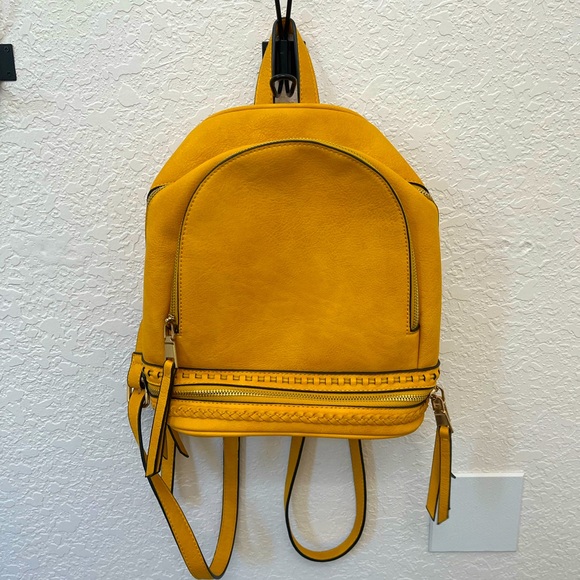 Lots if zippers, tassels and room inside. Beautiful golden yellow color works year round.