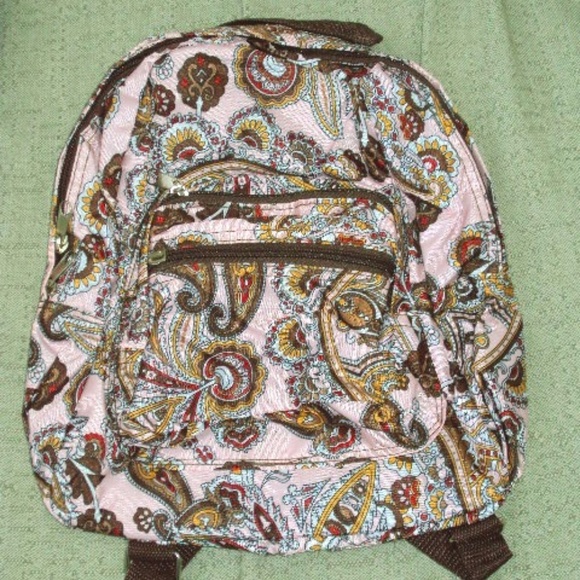 Small Adorable Canvas Pink Brown Paisley 3-Pocket Toddler Backpack or Purse for Girls/Boys/Women NEW!