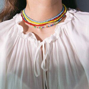 Small Bead Choker Necklace for Women Cute Boho Beaded Necklaces Adjustable Beach
