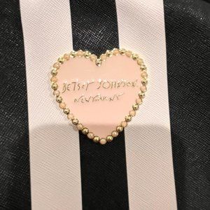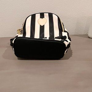 Small Betsy Johnson New York black and white stripe mini backpack with hearts