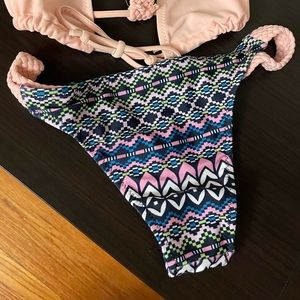 Small bikini with crochet racerback and matching bikini. New, never worn.