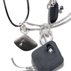 This Cord Necklace features a delicate Black Stone charm found on the shores of Lake Superior and handcrafted with care for a cute and subtle piece that goes with any style for him or her! All of our stone jewelry is shipped with information on how to purchase our Lifetime Warranty (sold separately).