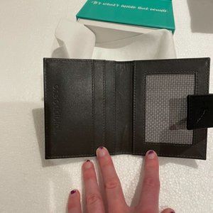 This is a small black leather wallet. Never used and in excellent condition, can hold around 3-4 cards