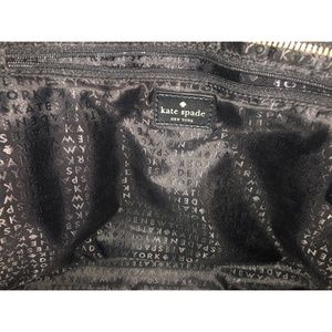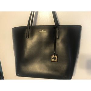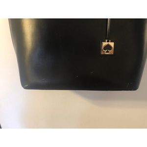 Small leather tote in black from Kate Spade. 15" opening across the top, 12” across the bottom. In very good overall condition, light scruff marks near the bottom of the bag (picture 3). Interior and lining is in excellent condition.