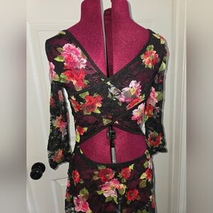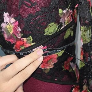 Great condition. Floral stretchy lace. TTS. Criss-cross back. Lace 3/4 sleeves