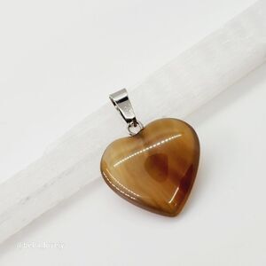 Small Brown Orange Striped Onyx Agate Heart Shaped Pendant