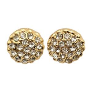 Small Button Earrings Clustered Clear Rhinestones Round Shaped Gold Tone
