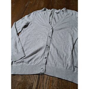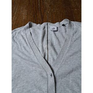 Good Used Condition Women's Size Small CAbi Grey Long Sleeve Deep V-Neck V-Cut Rear Zip Button Front Lightweight Knit Sweater