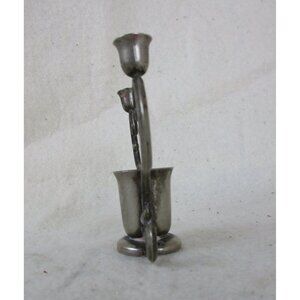 Small Candlestick, three candle stick holder, Pewter/silver metal candle holder,