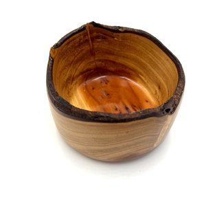 Small Carved Burl Wood Bowl Trinket Dish Vessel Raw Edge 3.75 x 2.25"