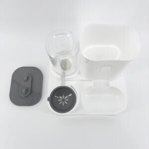 Keep your pet’s feeding area clean and organized with this compact cat feeding station. This all-in-one setup includes a food storage container, water dispenser, and bowls to keep your cat’s meals fresh and accessible. The sleek design fits neatly in any corner of your home, making it ideal for small spaces. Easy to assemble and clean, it’s perfect for cats and small pets. Ensure your furry friend has access to food and water anytime with this practical feeder.