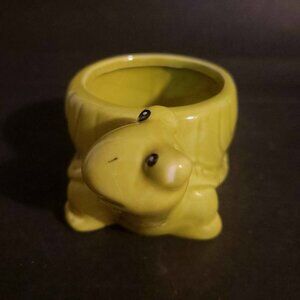 Small Ceramic Turtle Planter, Also Known As The Tillie The Turtle Planter, In A Yellow-Green Color. Its in excellent used condition. White spot above right eye is part of the glazing, its not a chip. Item is chip, cracks or crazing free. **See Pictures**