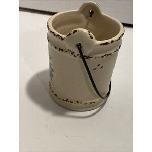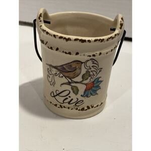 Small Ceramic Wire Handled Bucket Bird & Flower Bucket, Saying "Live", Rustic