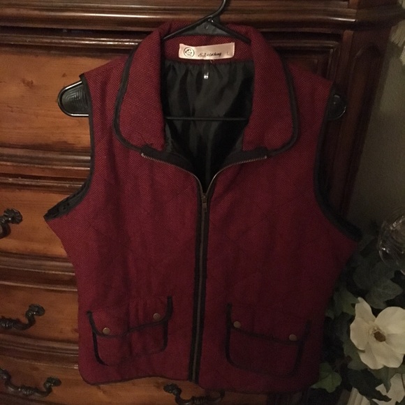 This vest has only been worn a few times. Burgundy and Black small pattern chevron design. Perfect condition!! No snags, rips or holes! Can dress up or down!