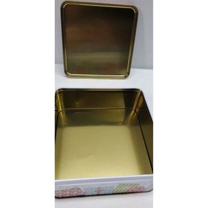 Small Christmas Tins Candy Cookies Goodies EMPTY with Lids Lot of 2. Please view photos as they are part of the description. The round one is older and has some wear and not as bright and shiny. The square one is newer and brighter and shiny.
