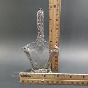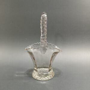Small Clear Glass Vintage Wedding Bridal Basket Vase with Handle 6x3" *Imperfect