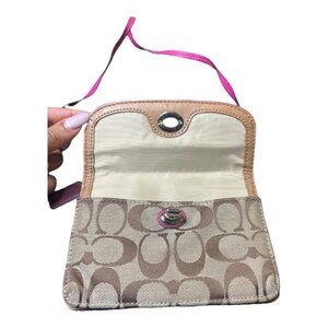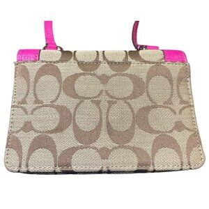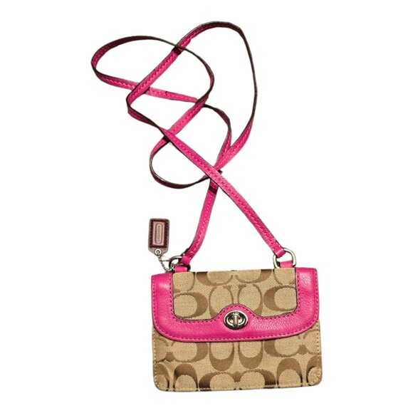Small Coach Signature Dylan Crossbody Wallet Khaki And Magenta
