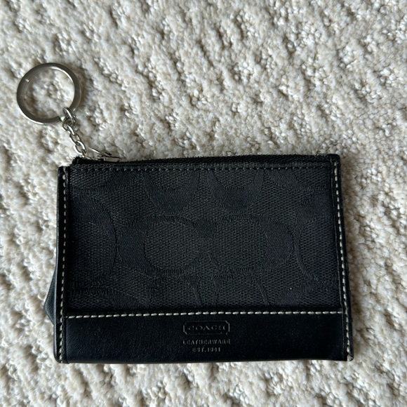 Small Coach Wallet in good condition. Has zipper and key ring with pocket on 1 side. Missing pull tag for zipper but has ring to open see photo