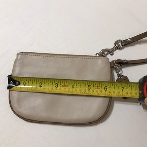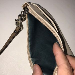 Quaint, dainty, enough for the essentials. Classic style and neutral color can easily pair with nearly any outfit. Can use hook to attach to bigger bag to keep smaller items. Front slip pocket. Used twice. 💜