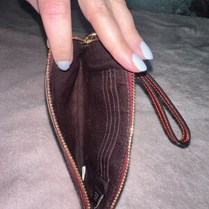 Never used coach wristlet in a rust red. Perfect if you just need to carry a few small things or throw it in another bag to use as a wallet.