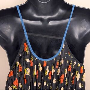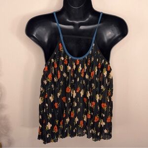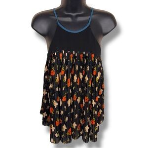Small Cooperative Pleated Floral Flowy Tank Top Womens Black Red Stretch
