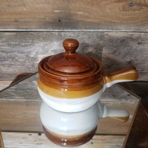 Small Covered Stoneware Soup/Bean Pot with handle.