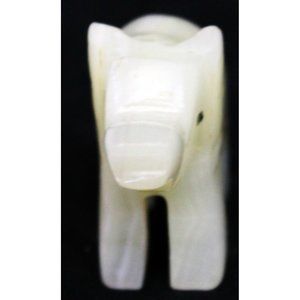 Small Cream Stone Elephant Figurine 2.5" Carved White Opaque Mini Tiny Miniature