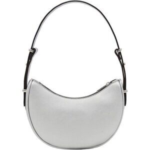 Small Crescent Smooth Faux Leather Bag Light Grey