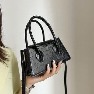 Features: A sleek mini handbag with a classy crocodile pattern faux leather finish. Two roomy compartments with snap closures keep your essentials organized. Comes with a handy top handle and a detachable, adjustable shoulder strap — use it as a crossbody, shoulder bag, or a cute clutch.