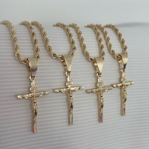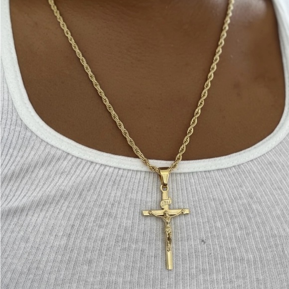 14k Gold Plated Rope Chain with Cross Pendant Unisex