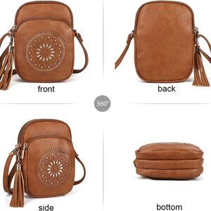 Features: Crafted from ultra-soft PU leather with fabric lining, this stylish small crossbody bag features a hollow-carved design, gold-tone hardware, and tassel details for a fashionable touch. It has 3 main zippered compartments, perfect for organizing your phone, wallet, keys, and more without any bulk.