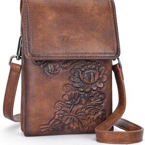 Small Crossbody Bag Vegan Leather Embossed Flower Design Cell Phone Purse with S