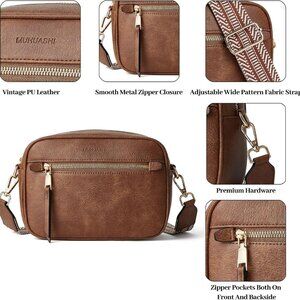 Small Crossbody Bag for Women Triple Pockets Vegan Leather Shoulder Camera Purse