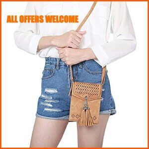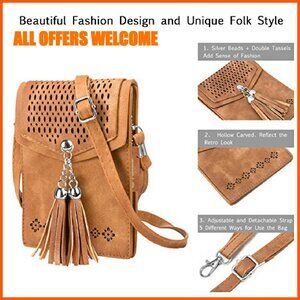 Small Crossbody Bag with Tassel, PU Leather, Phone Purse for Women