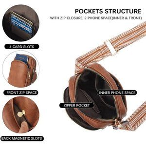 【Small but Functional Crossbody Bag】Special triple compartment design--Front Zipper Pocket (For passport or 6.1" phone) + Middle Main Zip Pocket + Back Slip Slot (magnetic-snap). Inside has 5 Card Slots + a phone slip slot. Meaning you can make storage easier & safer, More spaces that are convenient to allocating specific space for certain products.
