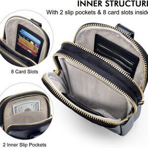Small crossbody bags for women: The cell phone purse for women is lightweight and and easy to carry while with roomy capacity: 2 main zipper compartments, 2 inner pockets, 8 card slots, 1 front cell phone pocket and 1 back pocket