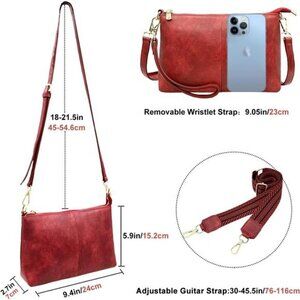 This handbags come with 1 wristlet strap, 1 leather strap and 1 wide trending guitar strap. It can be used as clutch purse with wristlet strap. The crossbody bags with 3 different adjustable straps can be matched with various styles of clothes in different occasions, showing the unique elegance, cuteness or casual style of women.